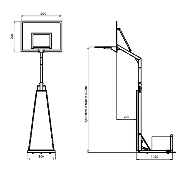 Mobilna košarkaška konstrukcija projektovana za čestu upotrebu u školama, dvoranama i na spoljašnjim terenima. Zahvaljujući stabilnoj čeličnoj strukturi sa antikorozivnom zaštitom i poliuretanskim točkovima, jedinica se lako pomera i skladišti. U skladu sa standardom EN1270.